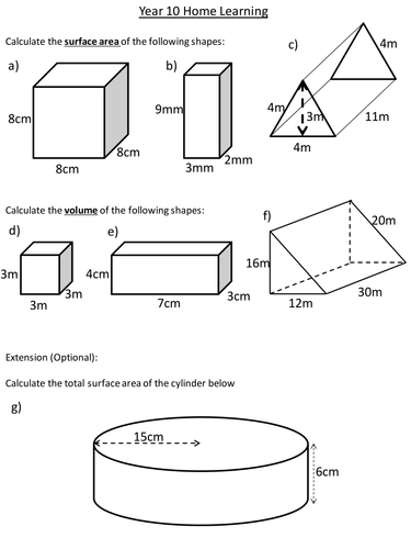 Geometry Worksheets | Surface Area & Volume Worksheets - Math-Aids.Com Our Surface Area & Volume Worksheets are free to download, easy to use, and very flexible. These Surface Area & Volume Worksheets are a great resource for children in 5th, 6th Grade, 7th Grade, and 8th Grade. Click here for a Detailed Description of all the Surface Area & Volume Worksheets. Quick Link for All Surface Area & Volume Worksheets